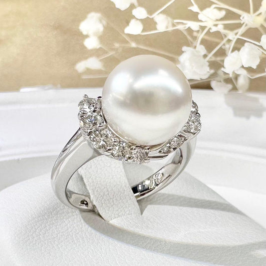 【美品】PT900 パール 10.7mm リング ダイヤモンド