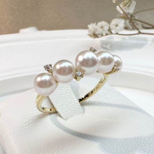 【K18】アコヤ真珠リング 4.5mm ダイヤモンド付 新品
