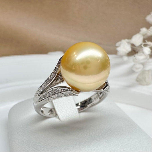 【K18】南洋パールリング 12.3mm ダイヤモンド付き イエローゴールド