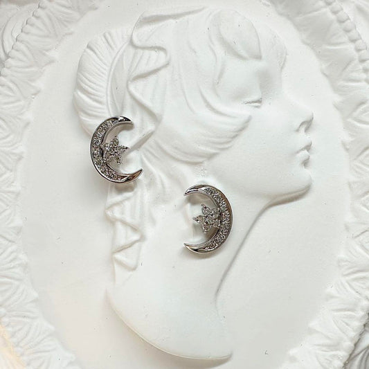 【K18】ダイヤモンド ピアス 0.18ct×2 三日月&スター