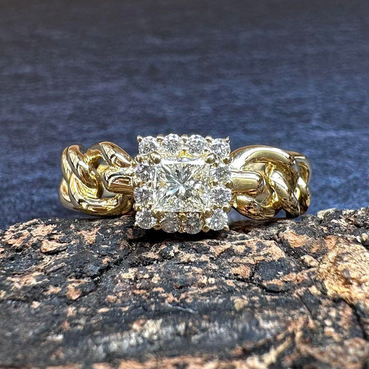 【K18】ダイヤモンド 0.30ct/0.13ct ゴールド チェン リング