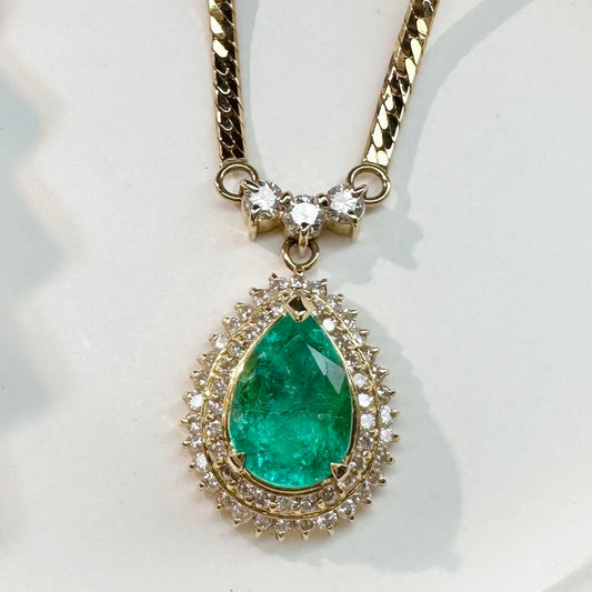 【K18】エメラルド 1.90ct ダイヤモンド ネックレス ヴィンテージ