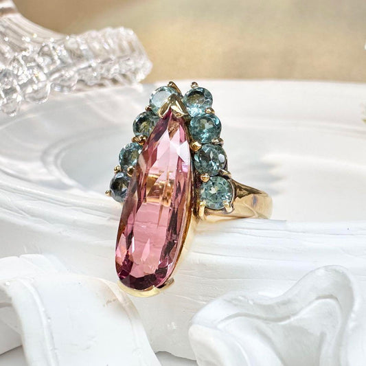 【K18YG】トルマリン 6.30ct リング 個性派バイカラー デザイン