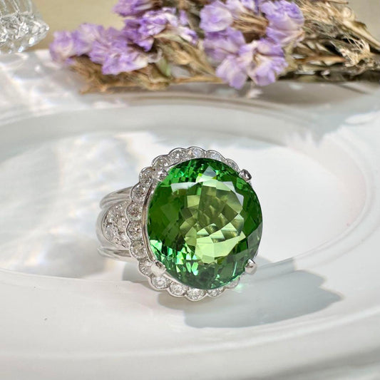 【美品】PT900 グリーントルマリン 7.69ctリング ダイヤ巻き