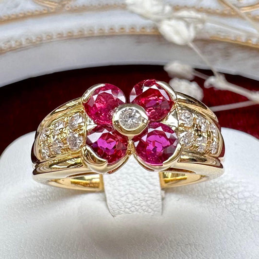 【K18】ルビー 0.48ct リング フラワーデザイン