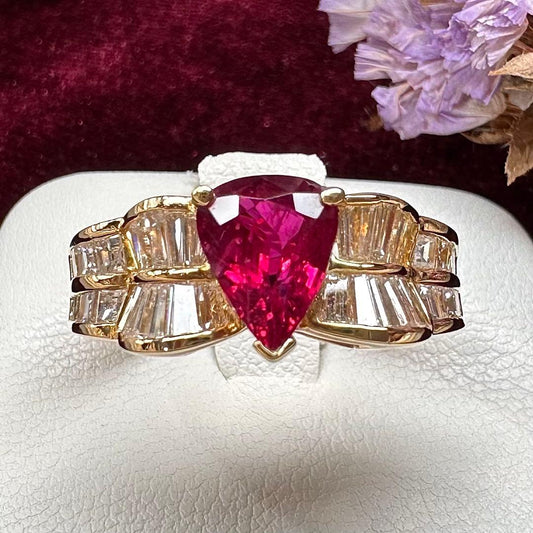 【K18】ルビー 1.31ct リング バゲットダイヤ