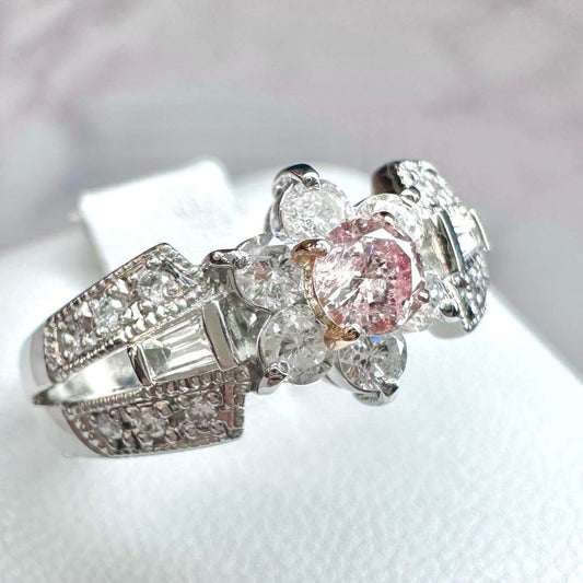 【美品】PT900 ピンクダイヤモンド0.20ct 花 リング