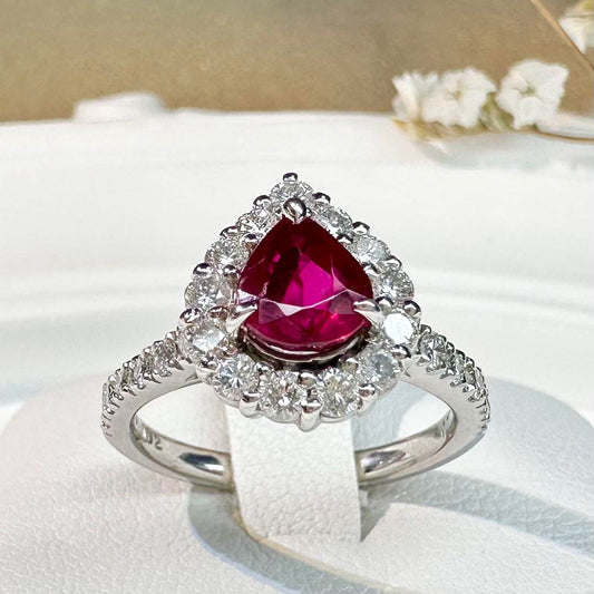 【美品】Pt900 ピジョンブランドルビー 1.02ct ビルマ産 ダイヤ 鑑付