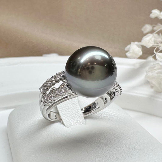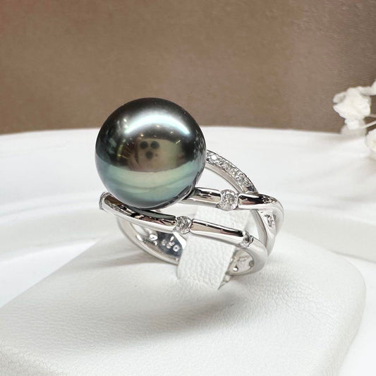 【K18】黒蝶パール 11.5mm リング ダイヤ付き