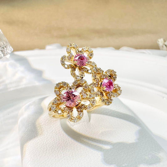 【K18】ピンクサファイア 0.93ctリング フラワーリング ダイヤ