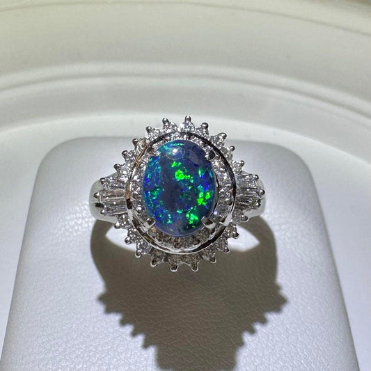 【美品】PT900 ブラックオパール 1.09ctリング ダイヤ巻き