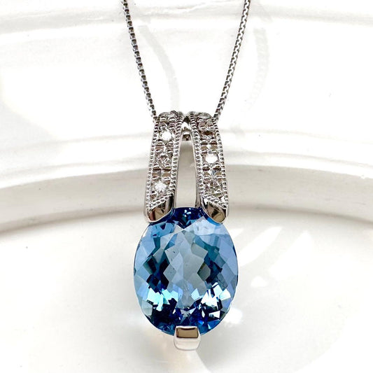【美品】K18/PT900 アクアマリン 2.64ct ネックレス ダイヤ