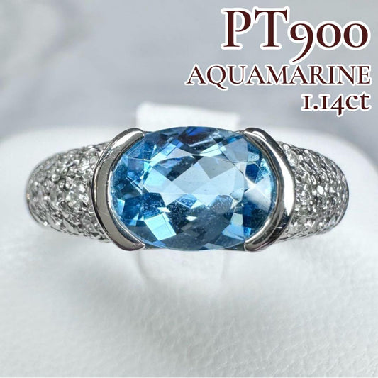 【美品】Pt900 アクアマリンリング 0.70ct ダイヤモンド取巻き