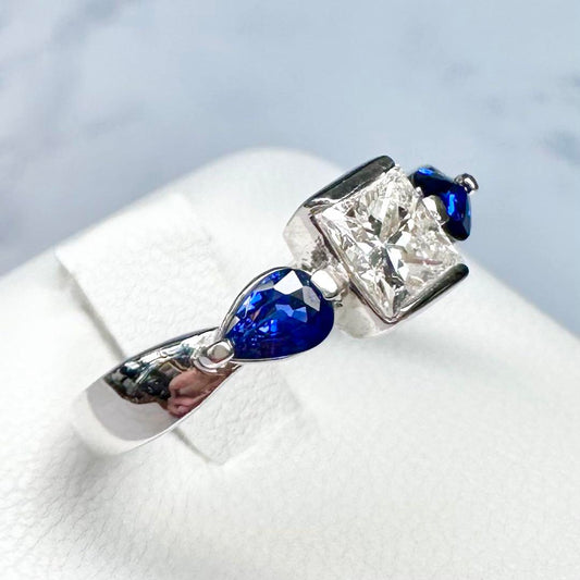【K18】サファイア ダイヤモンドリング 0.44ct 四角カット 上品デザイン