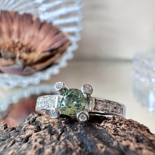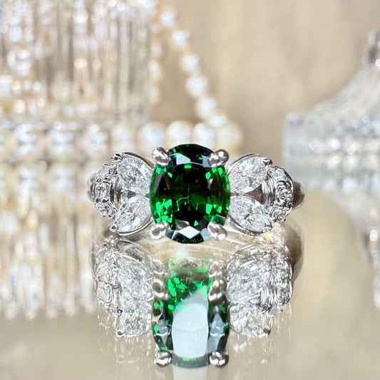 【K18】グリーンサファイア リング 1.25ct スクエアデザイン