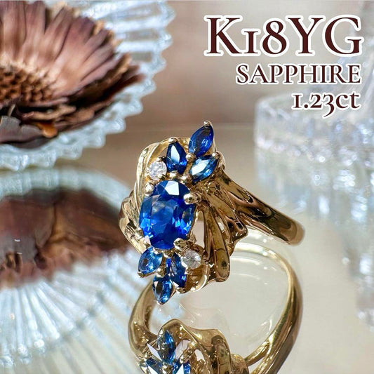 【K18】サファイア 1.55ct ダイヤ エレガントデザイン リング