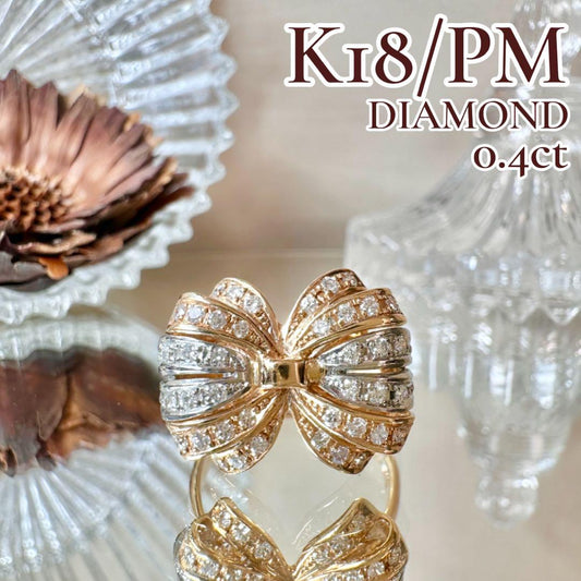 【K18】ダイヤモンド 0.16ct リング フラワーモチーフ