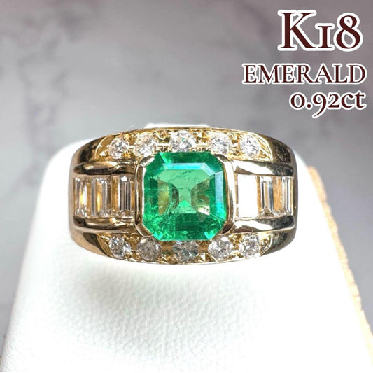 【K18】エメラルド 0.24ct ダイヤモンド リング