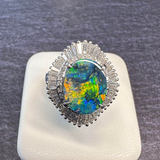 【美品】PT900 ブラックオパール2.37ct リング ダイヤ