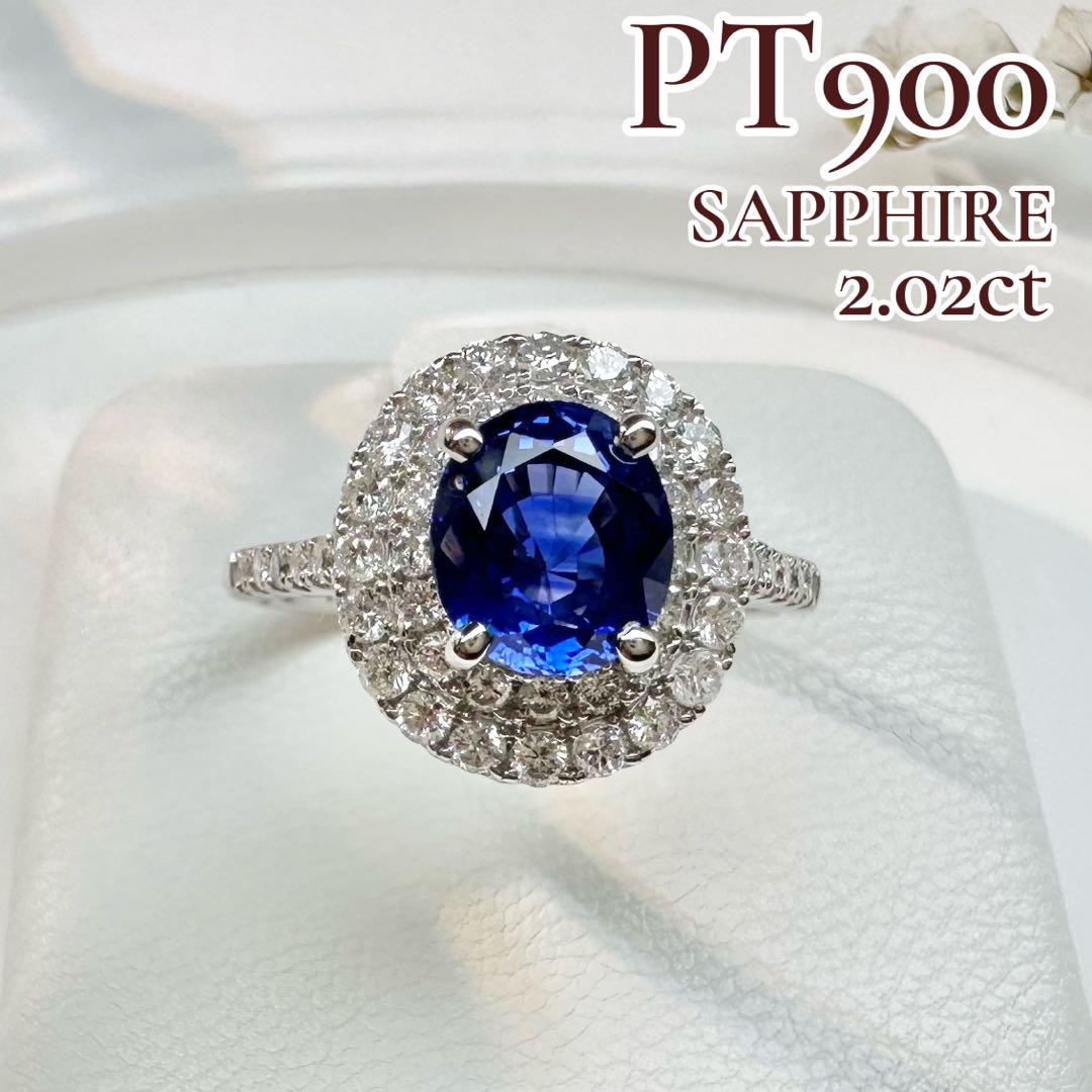 【美品】PT900 サファイア リング 2.02ct ダイヤ巻き
