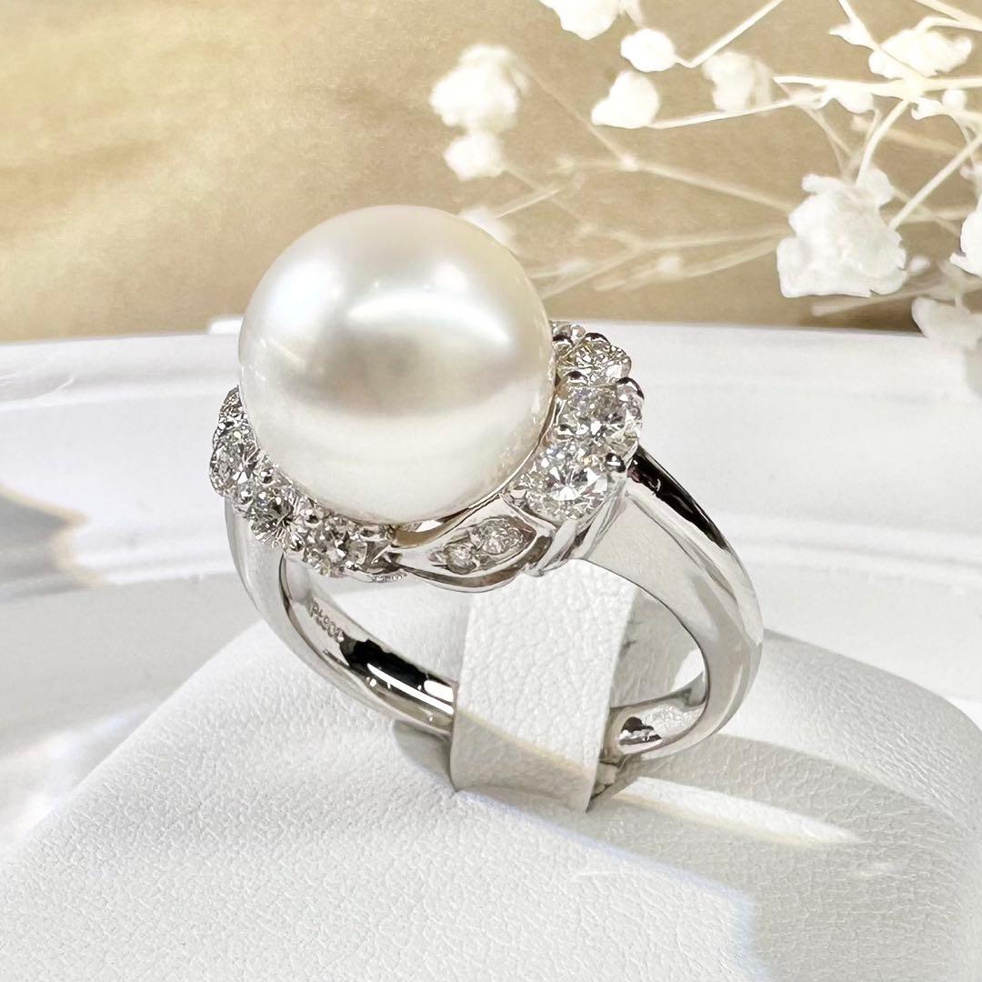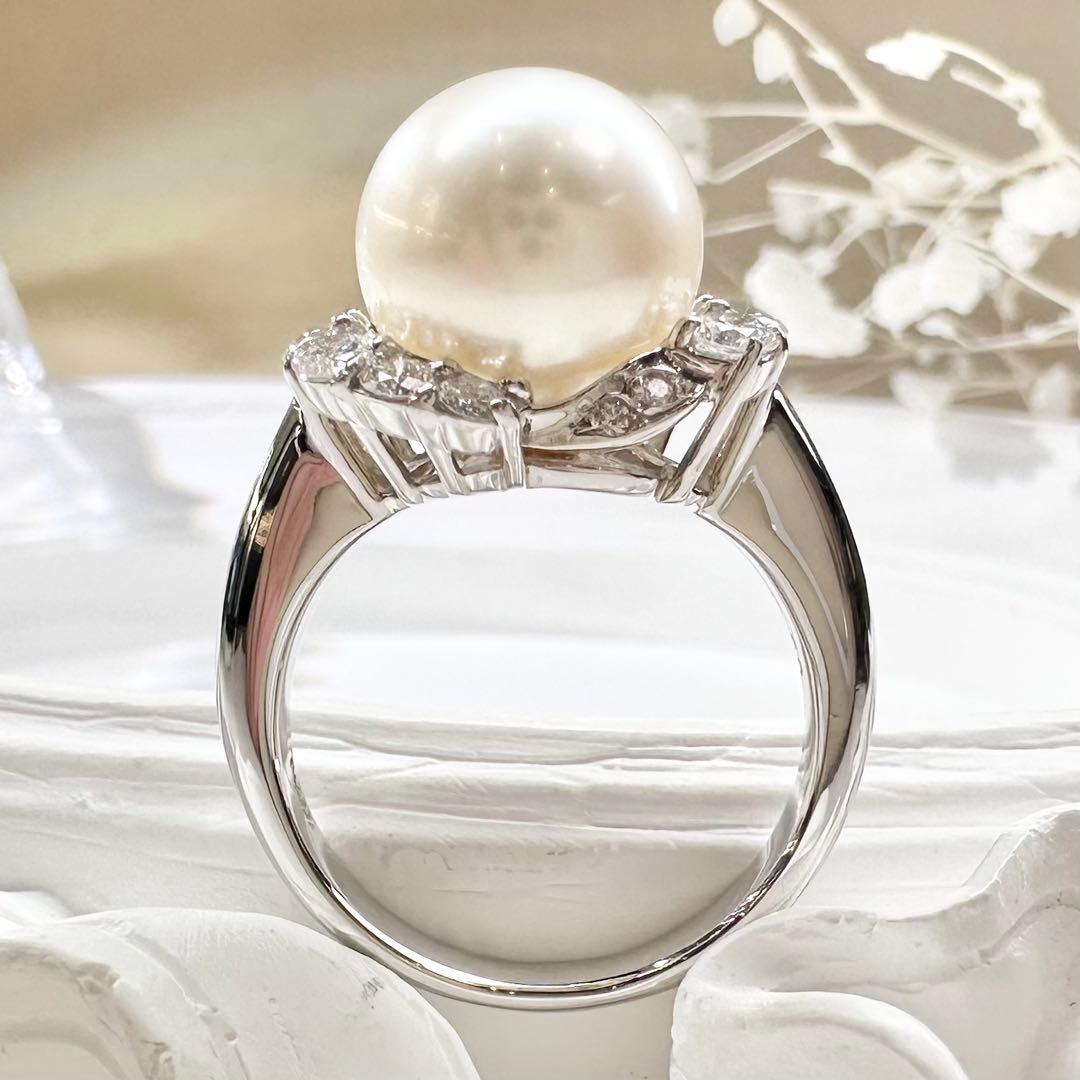 【美品】PT900 パール 10.7mm リング ダイヤモンド