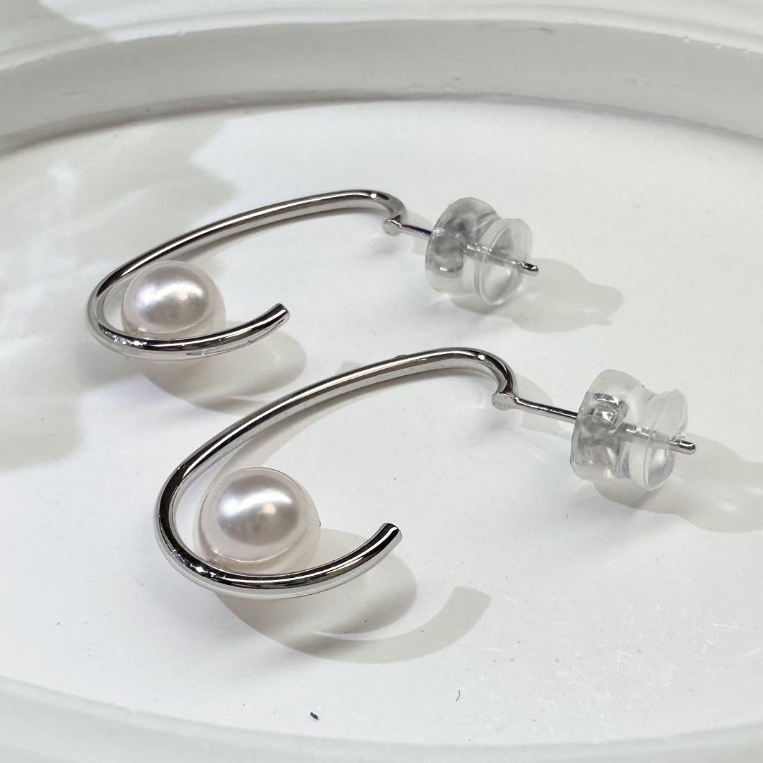 上品で洗練されたデザインが魅力のアコヤパールピアスです。しっとりとした光沢を放つ5.5〜6.0mmのアコヤ真珠を、18金ホワイトゴールドの曲線的なデザインにセット。シンプルながらもモダンなフォルムは、耳元に軽やかな動きをプラスし、カジュアルにもフォーマルにも合わせやすい仕上がりとなっています。真珠特有の柔らかい輝きが、女性らしさと気品を引き立て、デイリーから特別なシーンまで幅広く活躍。プレゼントとしても喜ばれるアイテムです。