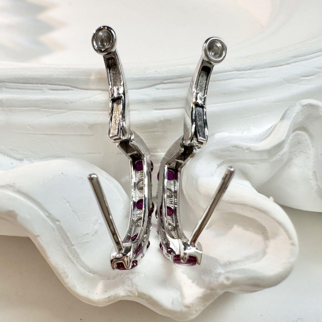 華やかで高級感あふれるルビーとダイヤモンドのフープピアスです。ルビーの深みのある赤色と、ダイヤモンドの上品な輝きが見事に調和し、耳元を華やかに彩ります。普段使いはもちろん、フォーマルな場面や特別な日の装いにもぴったりです。ホワイトゴールド(K18WG)の上質な地金を使用しており、しっかりとした作りで長くご愛用いただけます。