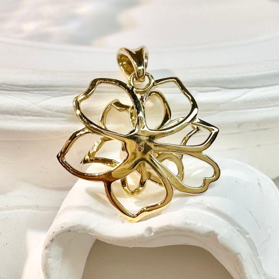 18金イエローゴールドにアコヤ真珠をあしらったペンダントトップです。パールは4.5〜5.0mmの可憐なサイズで、上品な艶と柔らかな光沢が魅力的です。デザインは蓮の花をモチーフとしており、ゴールドの繊細な透かし細工が真珠を引き立て、胸元を華やかに彩ります。日常使いから特別なシーンまで幅広くお楽しみいただけるアイテムです。プレゼントにもおすすめです。