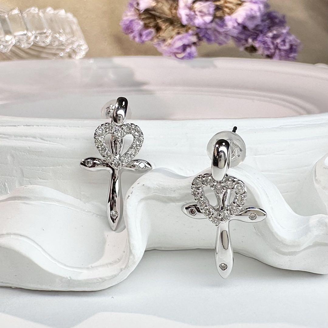 #ダイヤモンド#ピアス#K18WG#ハート#十字架