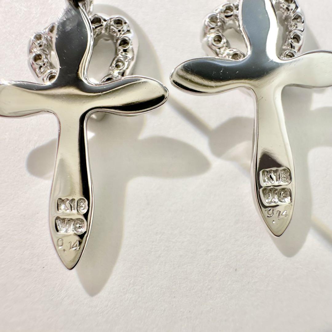 【K18WG】ダイヤモンド 0.14ct*2ピアス ハート 十字架