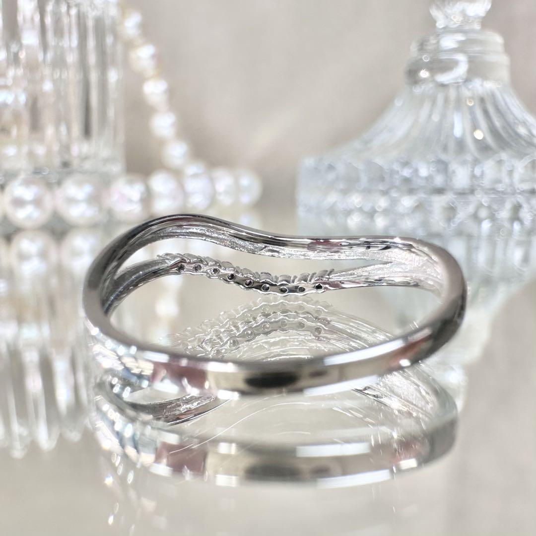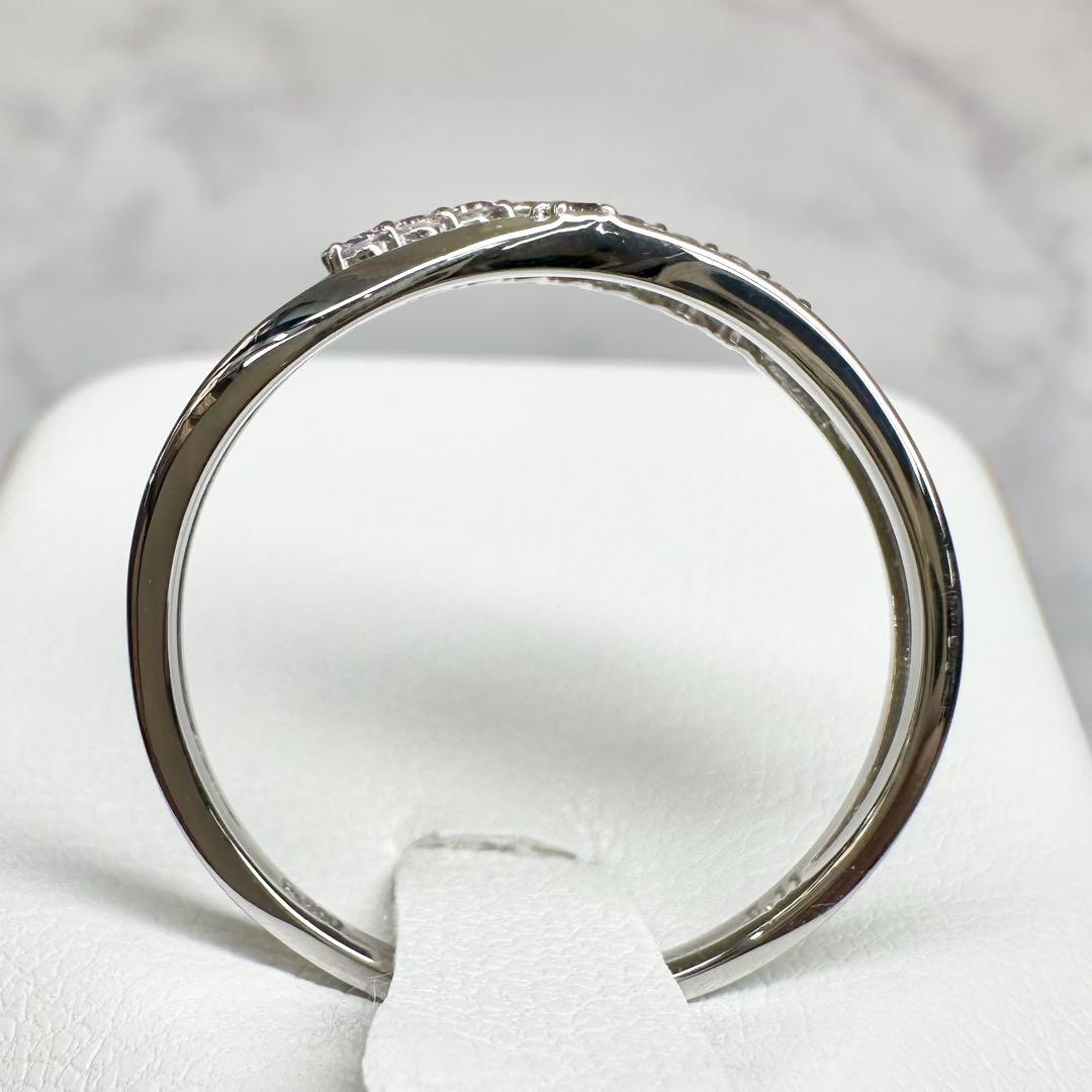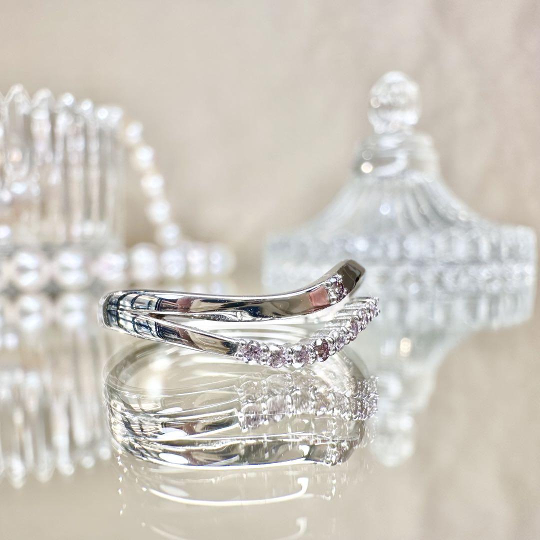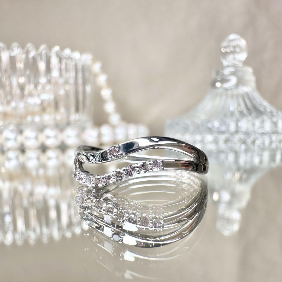 希少な天然ピンクダイヤモンドを贅沢に使用した、上品なウェーブデザインのプラチナリングです。PT900の高級感ある輝きに、やさしいピンクがさりげなく華を添えます。洗練された大人の女性にぴったりの一本。