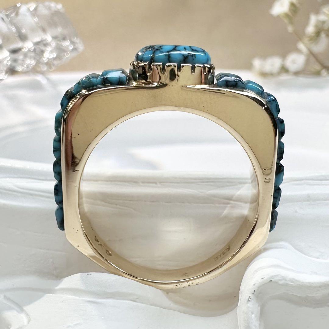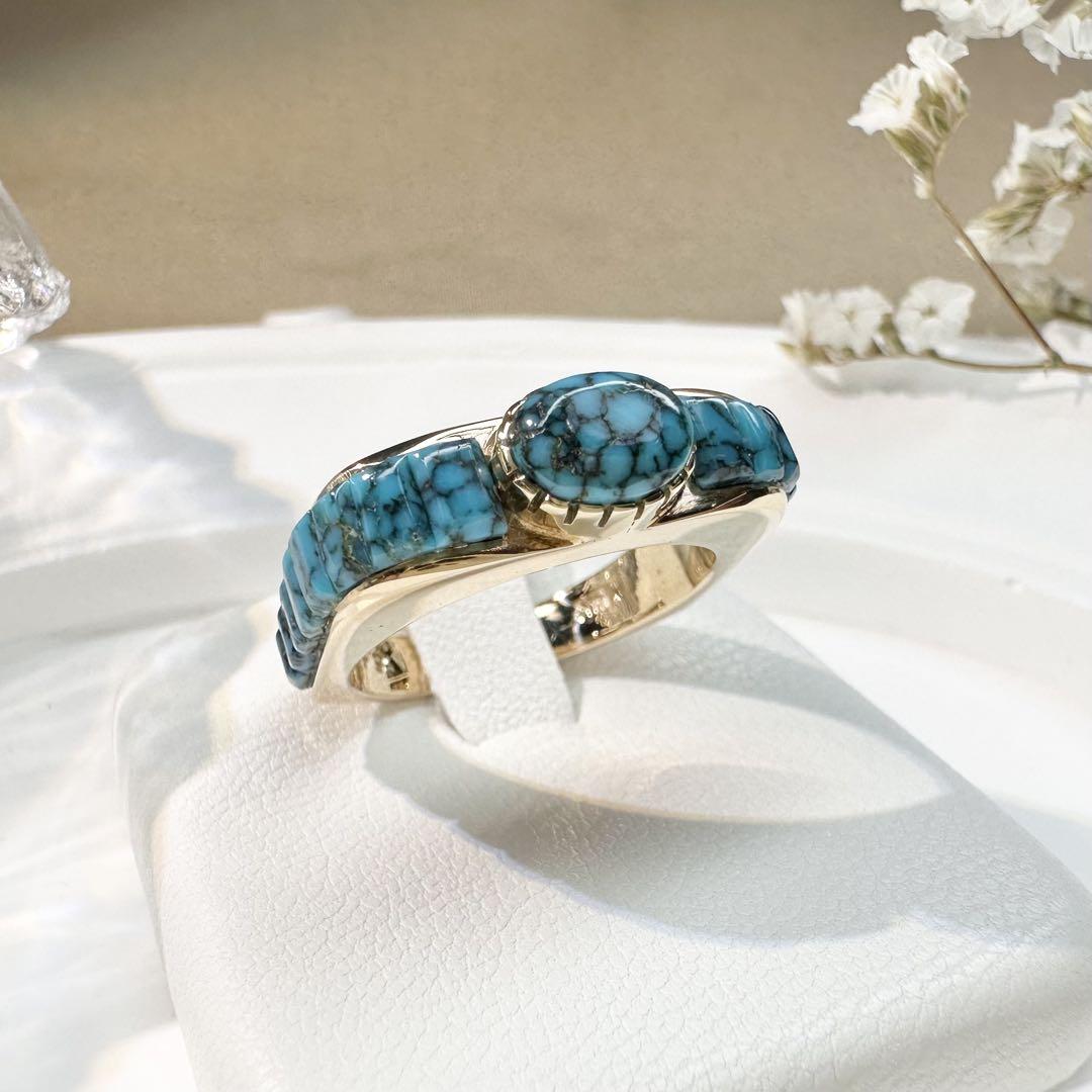 【美品】K14 ターコイズ リング 天然石 クモ模様