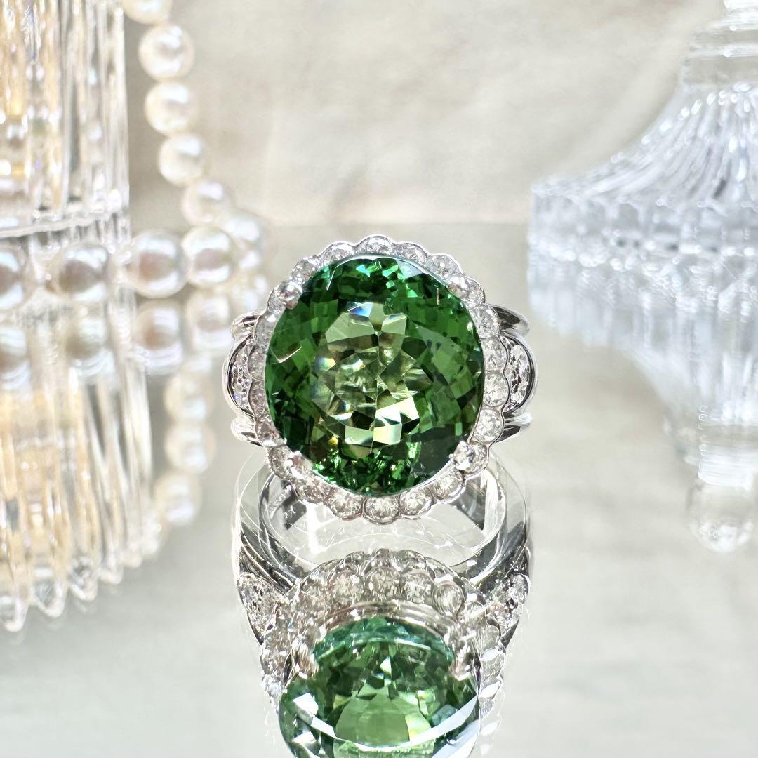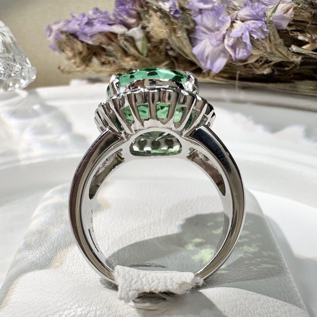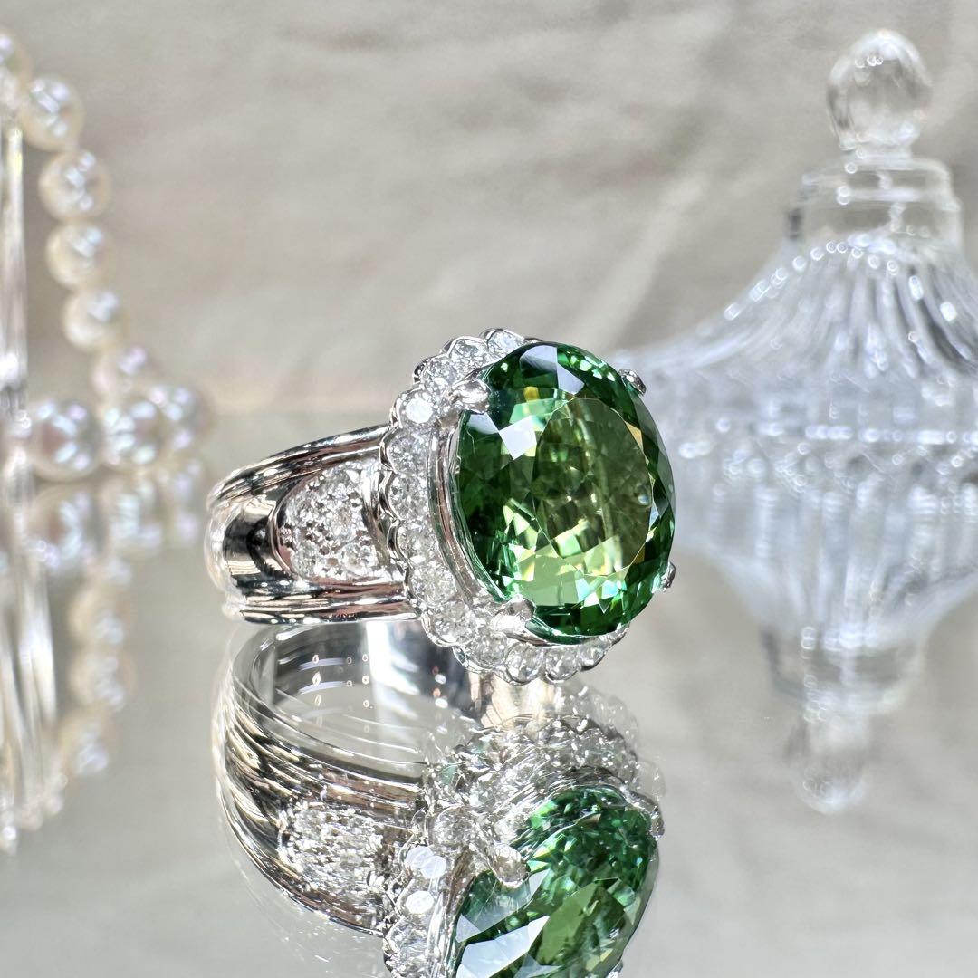 【美品】PT900 グリーントルマリン 7.69ctリング ダイヤ巻き
