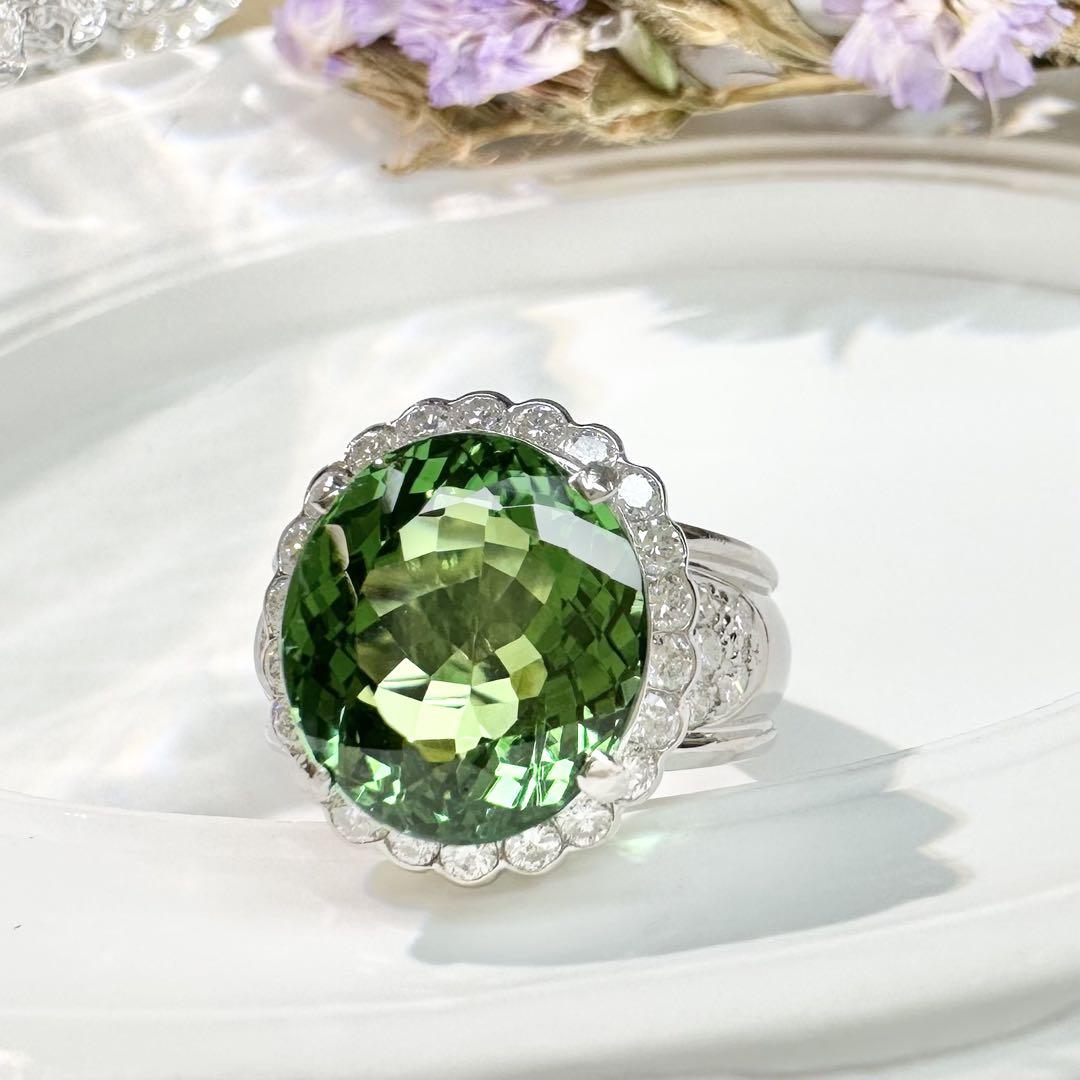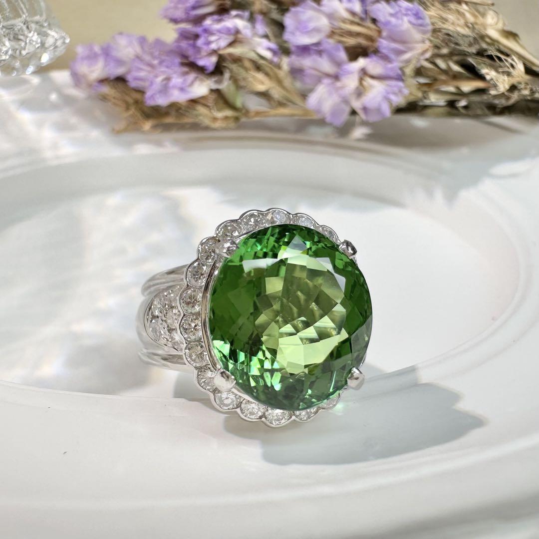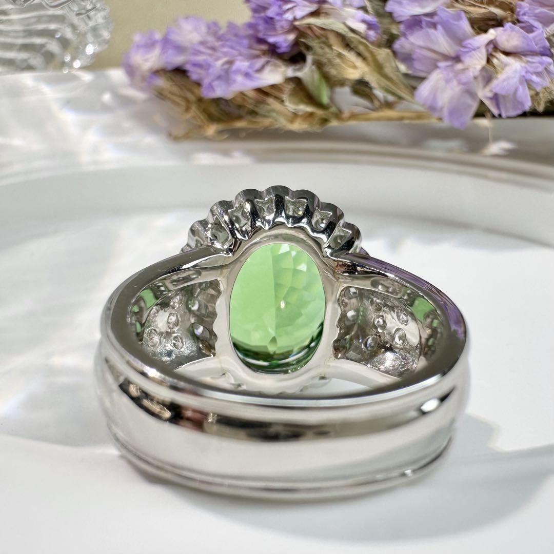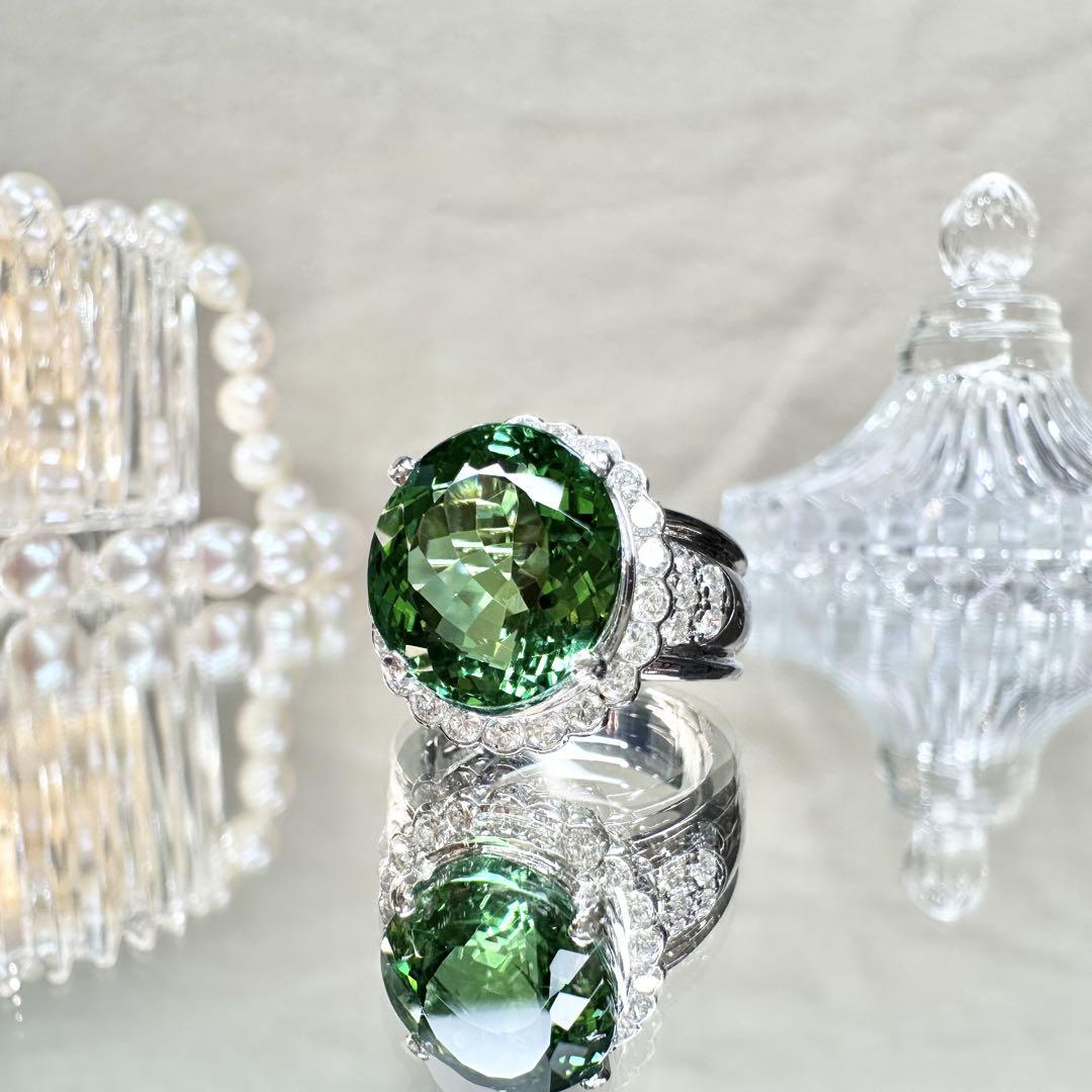 【美品】PT900 グリーントルマリン 7.69ctリング ダイヤ巻き