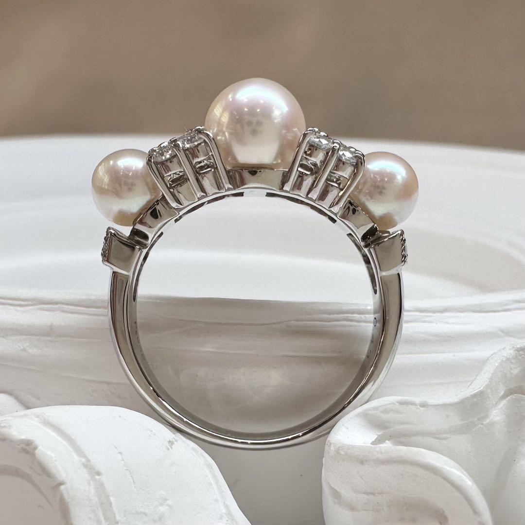 PT900プラチナに、上質なパールを贅沢にあしらったリングです。
