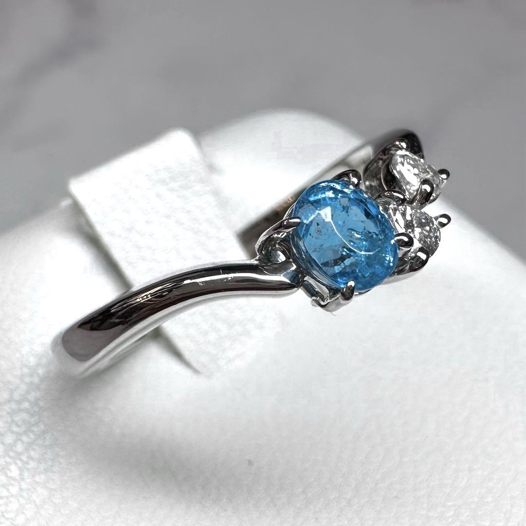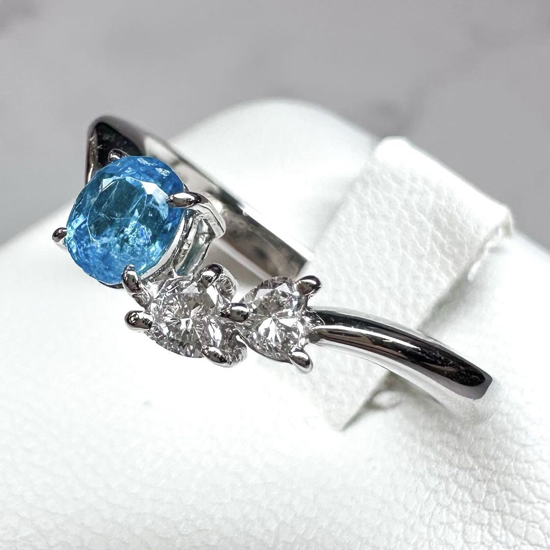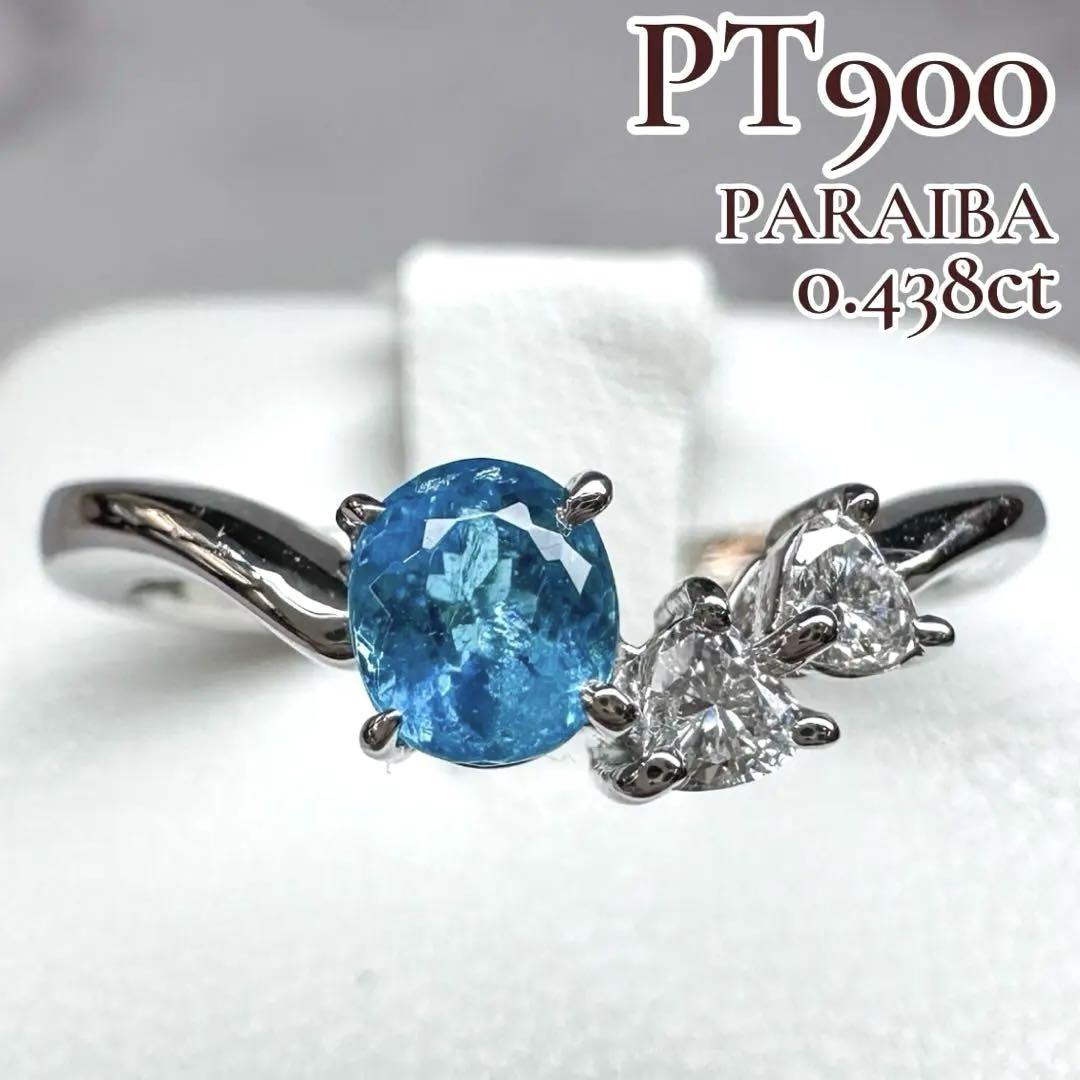 【美品】PT900 ブラジル産パライバ0.438ct リング ネオンブルー