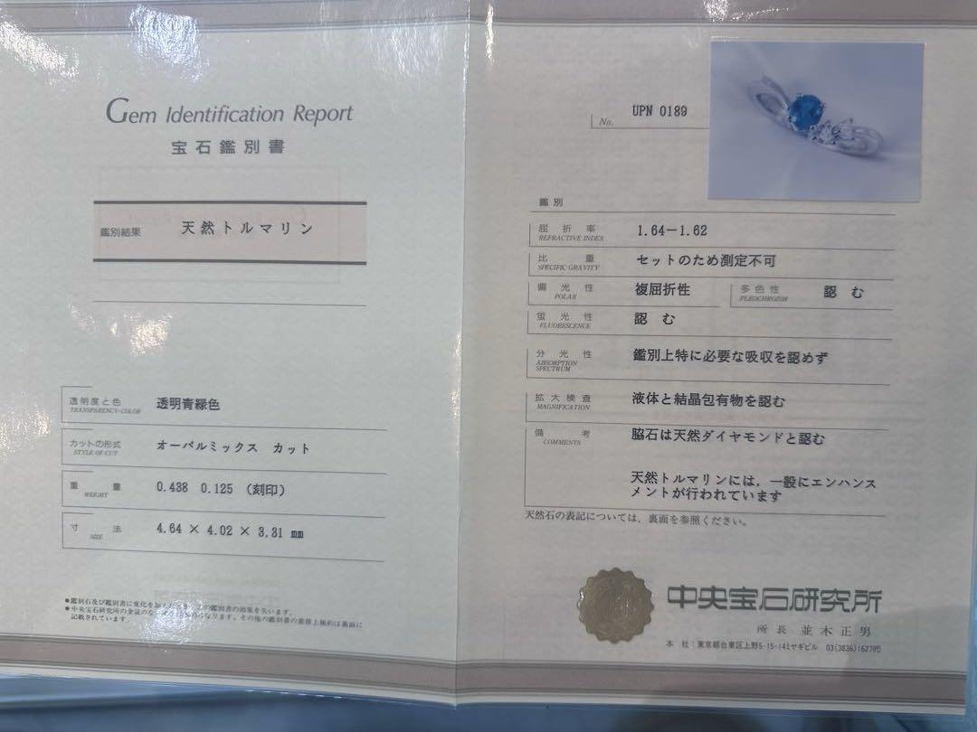 【宝石】パライバ0.438ct ダイヤ0.125ct