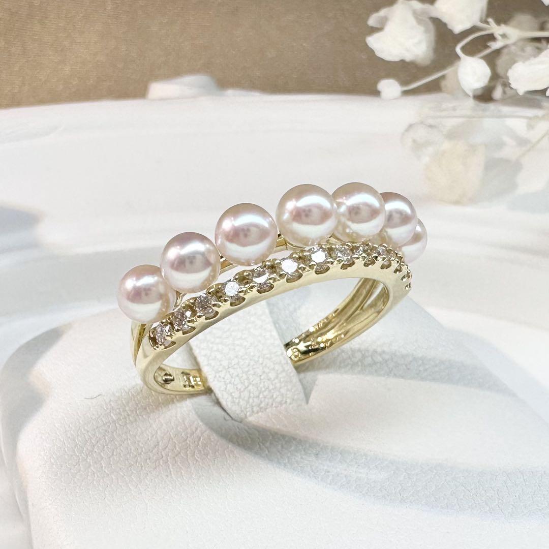 上品な3.5mmサイズのアコヤ真珠が並び、下段にはダイヤモンドが煌めくデザイン。