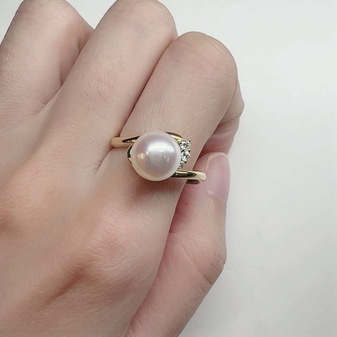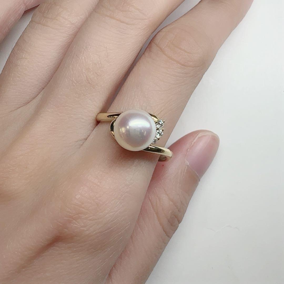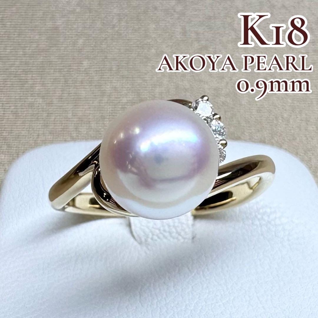 【K18】アコヤ真珠 リング 0.9mm ダイヤ付 上品なデザイン