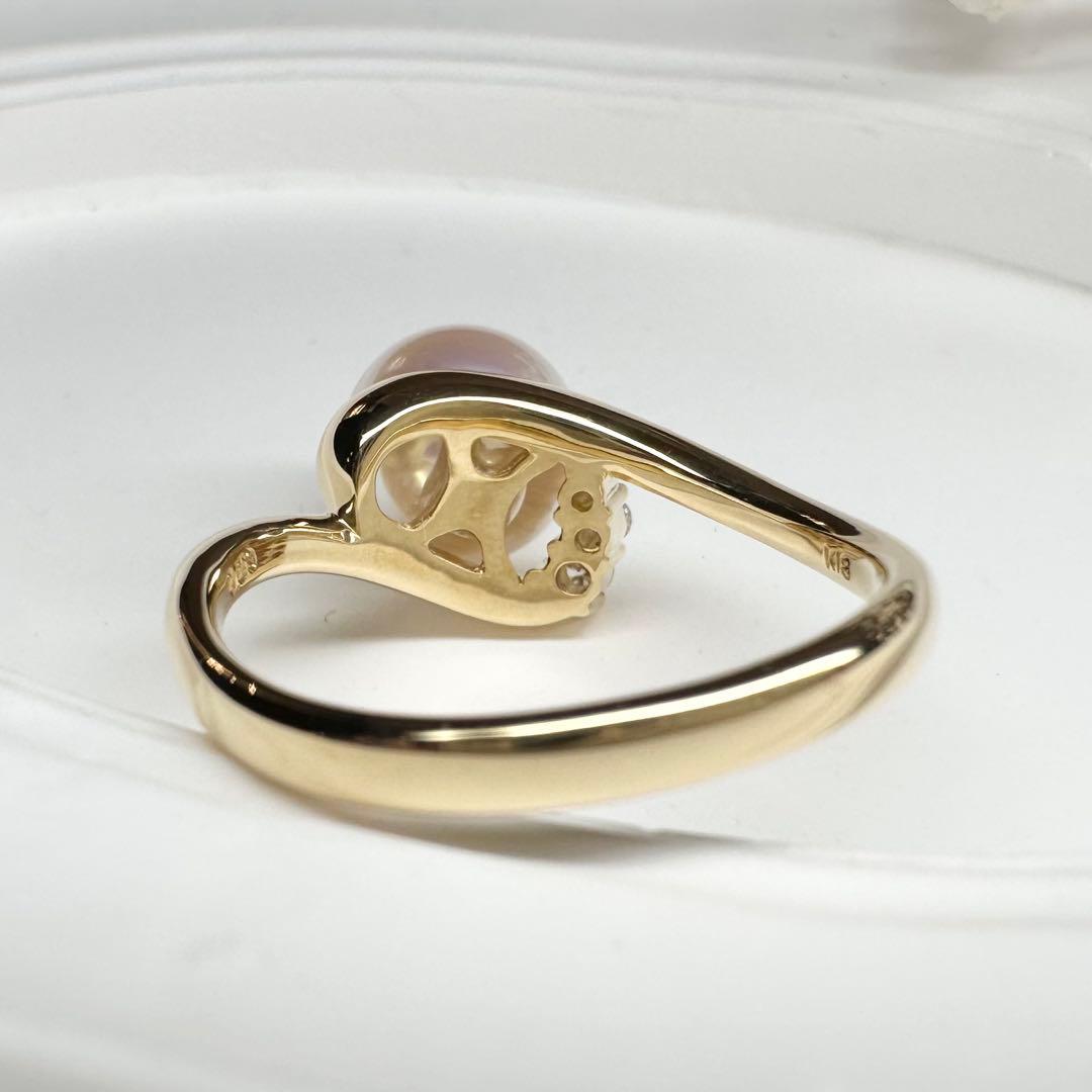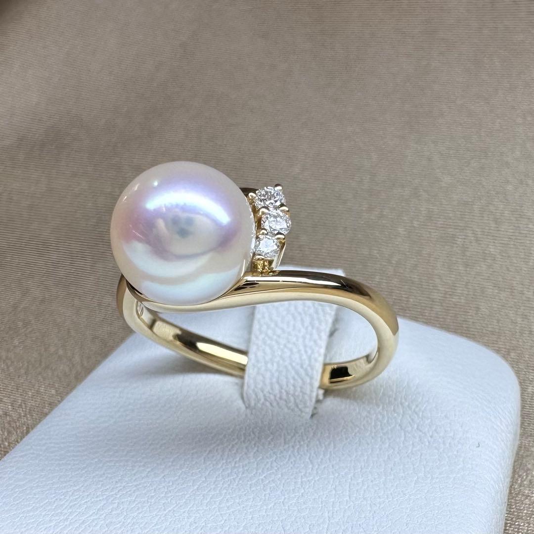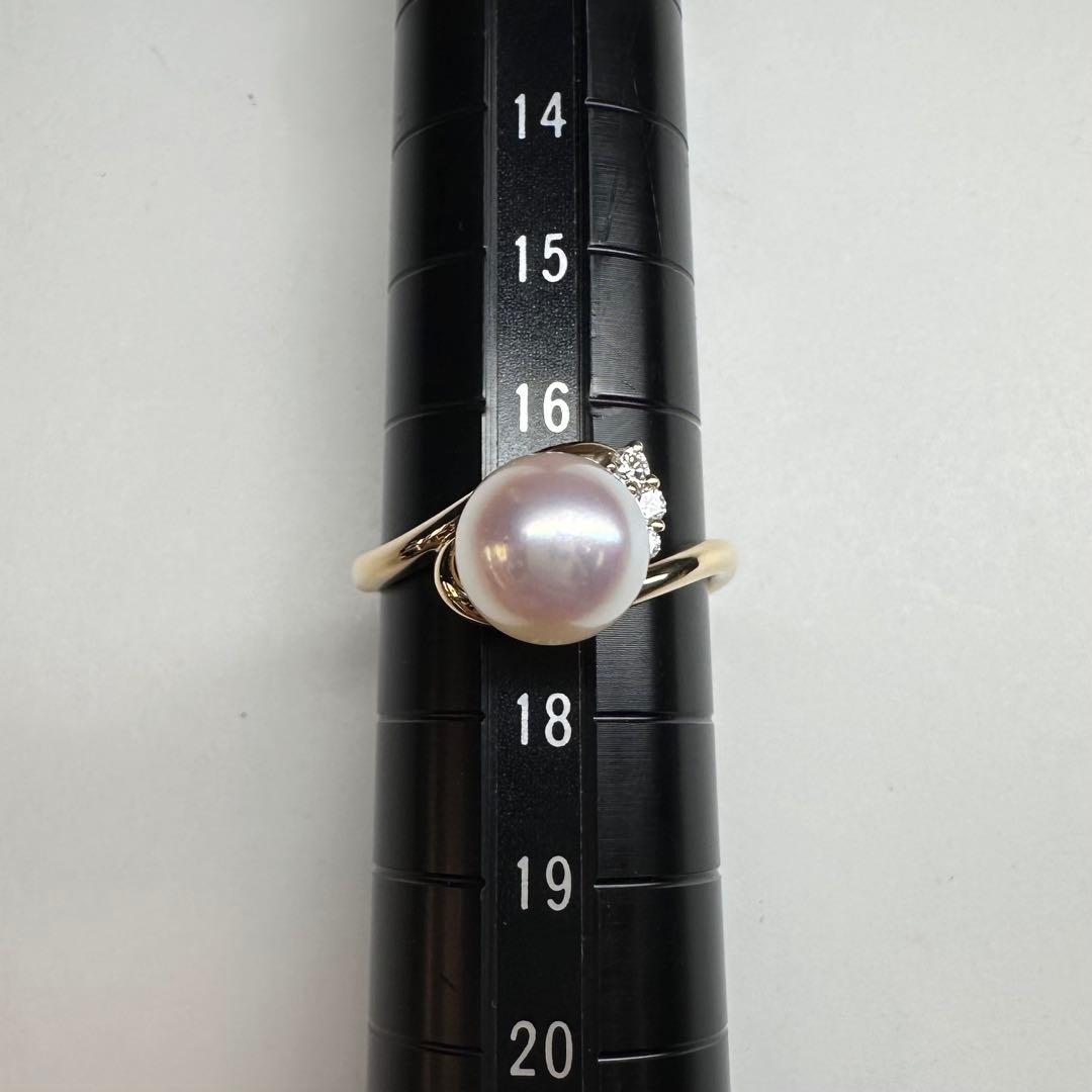 【K18】アコヤ真珠 リング 0.9mm ダイヤ付 上品なデザイン