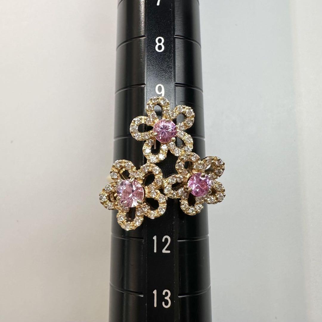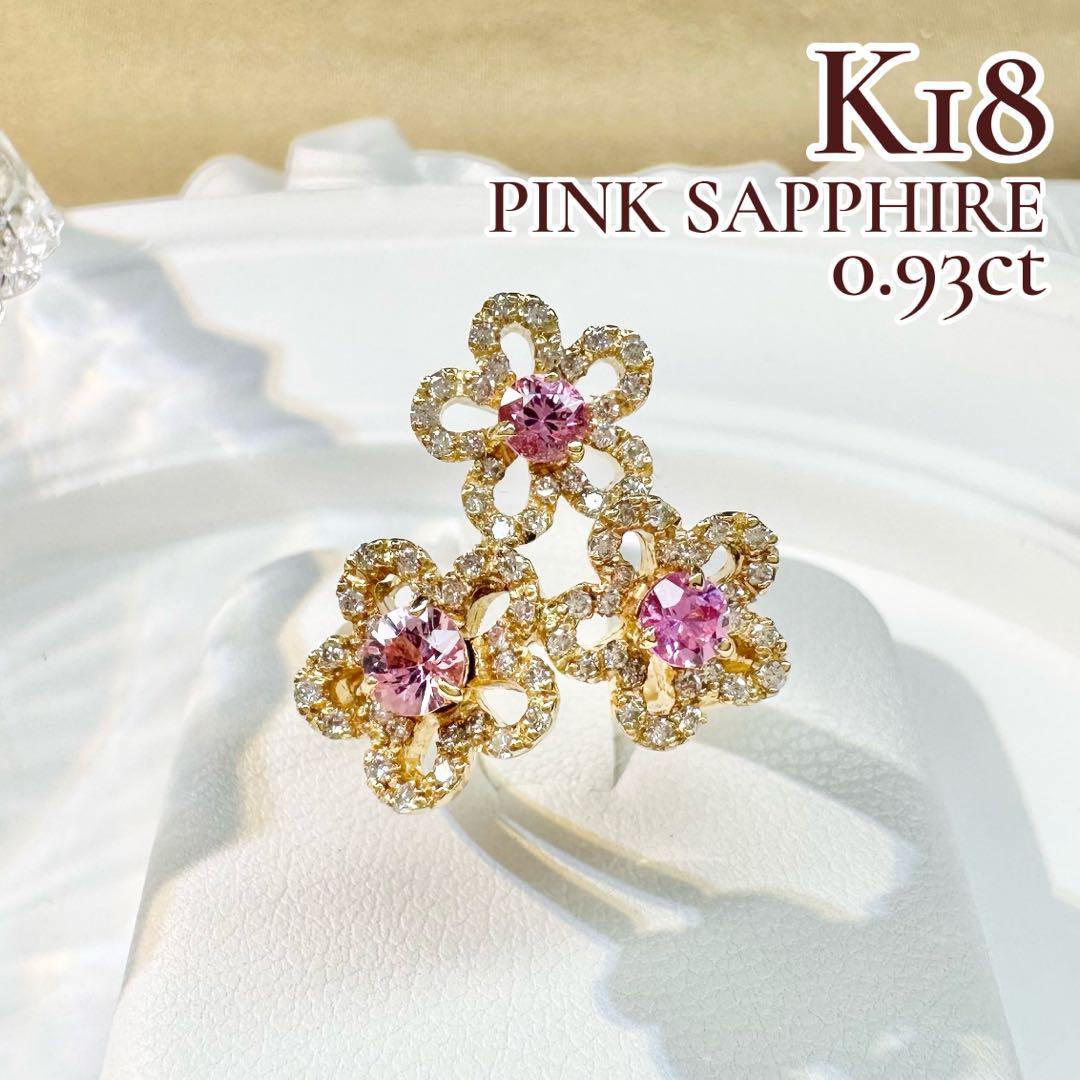 【K18】ピンクサファイア 0.93ctリング フラワーリング ダイヤ