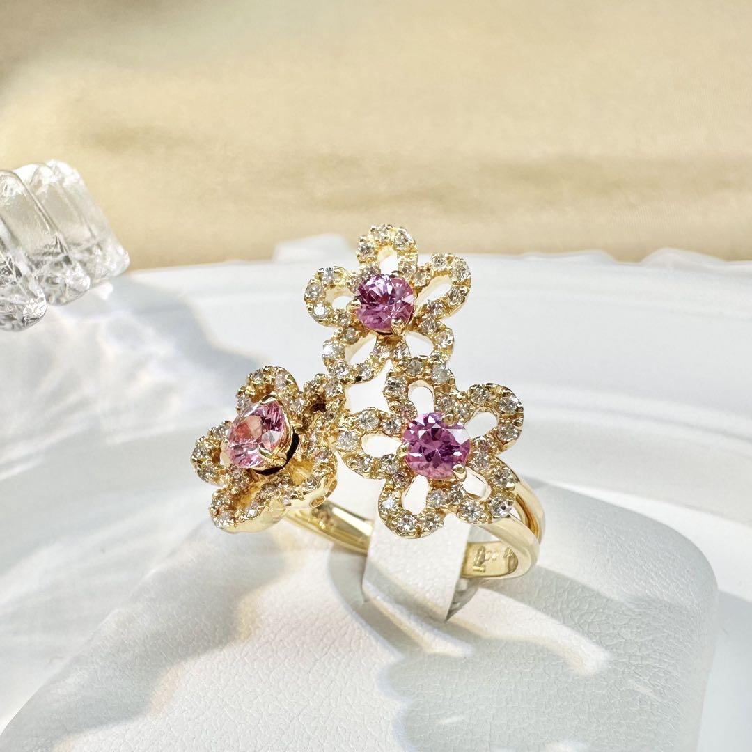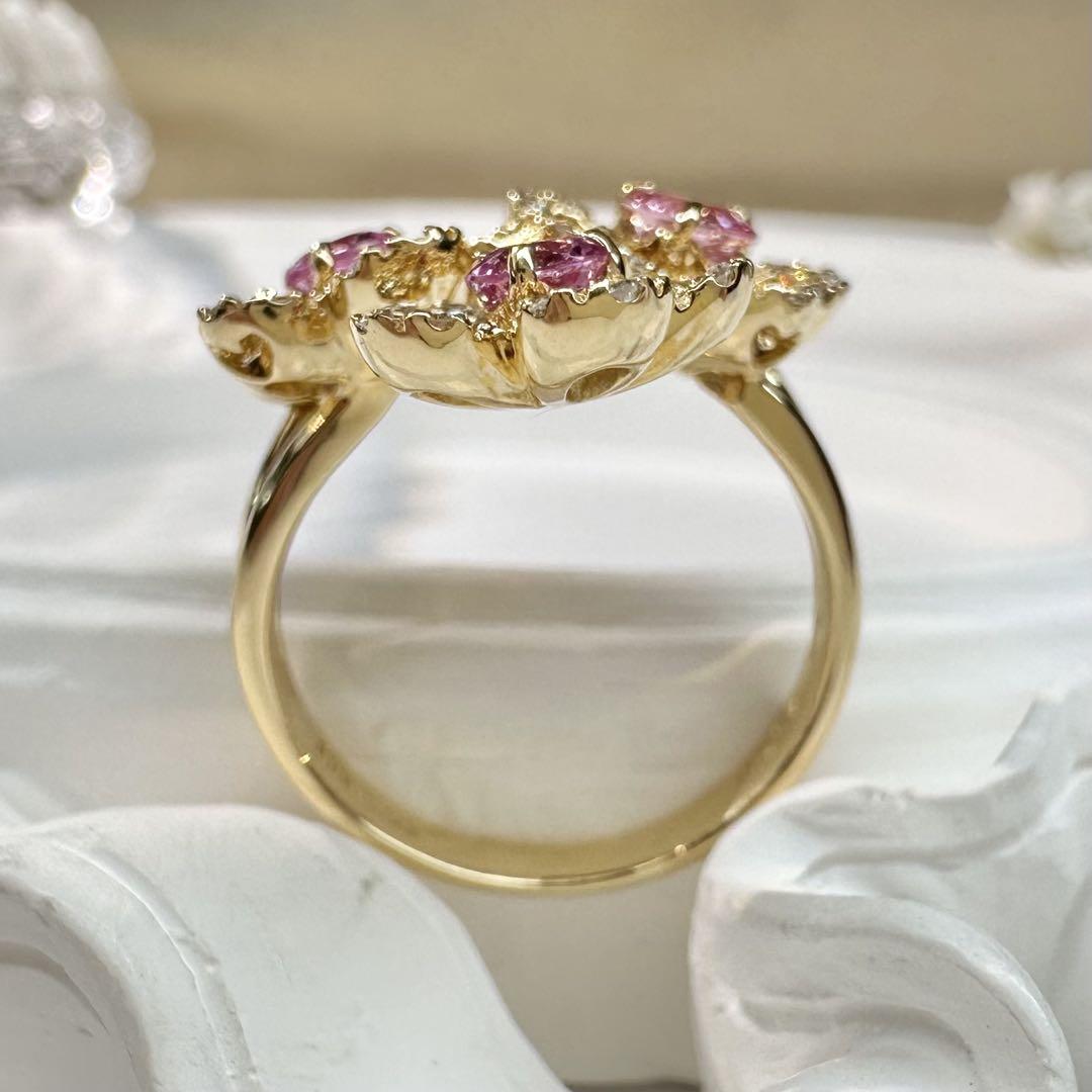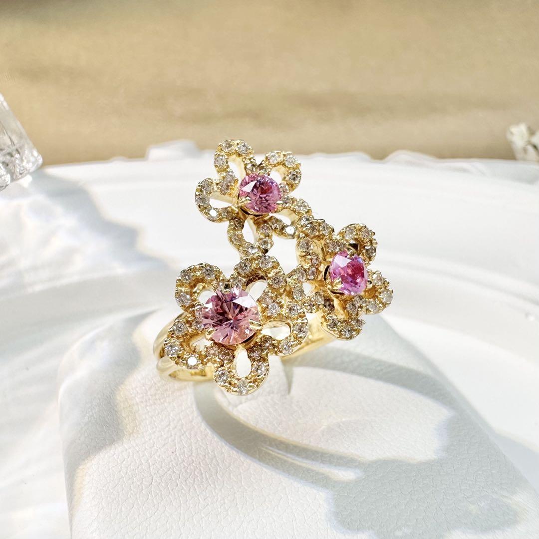 #ピンクサファイア#花#K18#デザイン#指輪#リング#ダイヤモンド