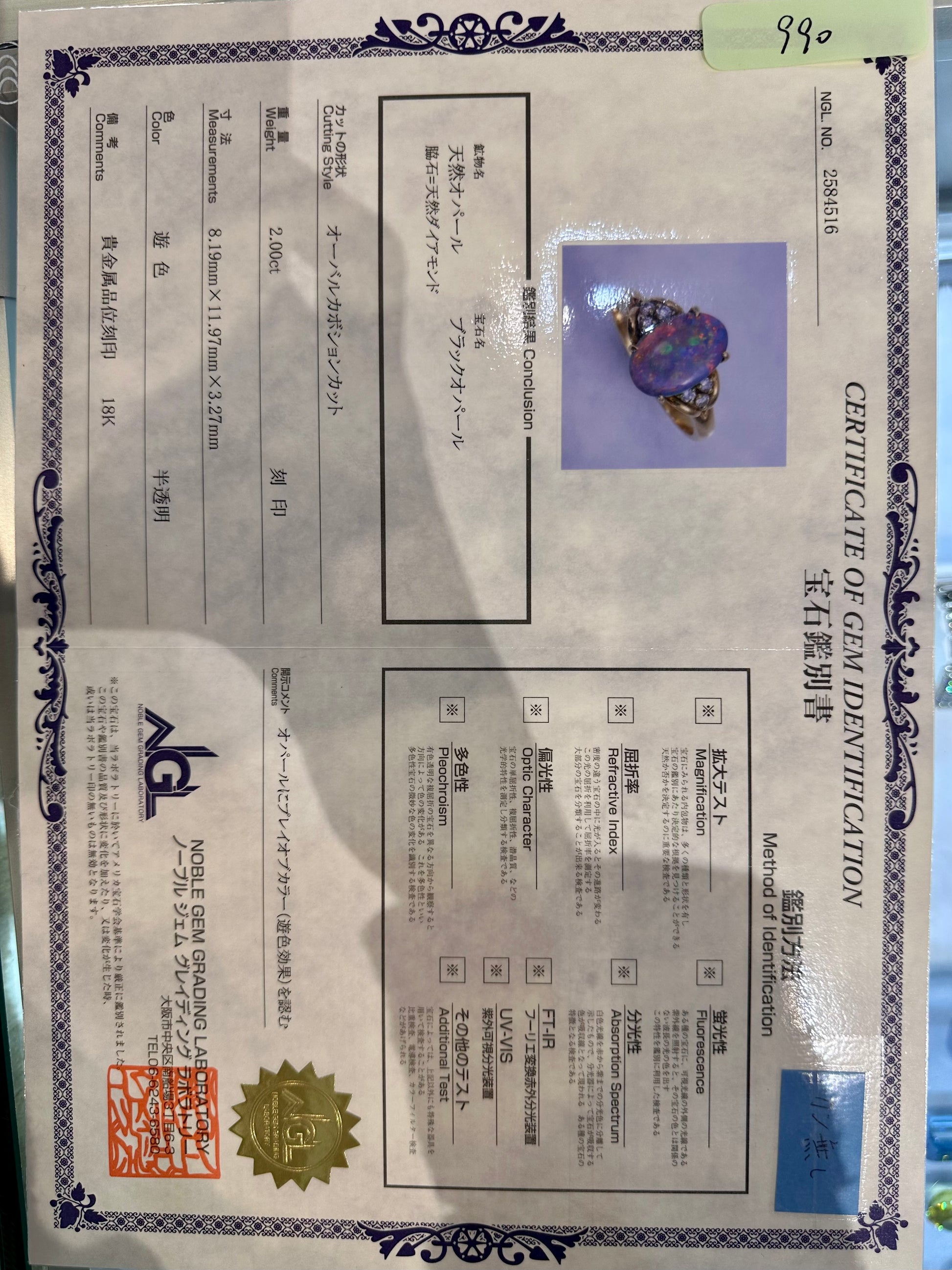 【付属品】鑑別書