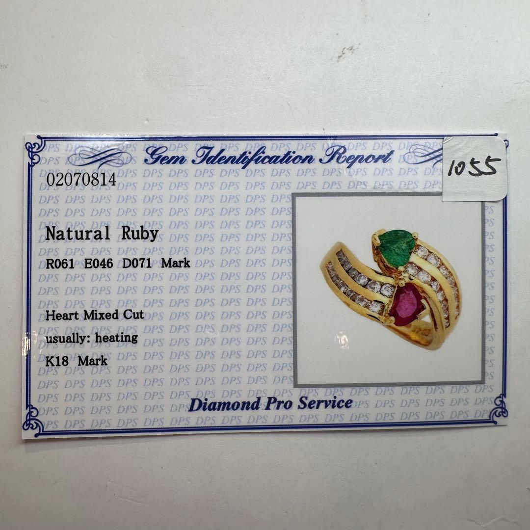【K18】ルビー 0.61ct エメラルド 0.46ct リング