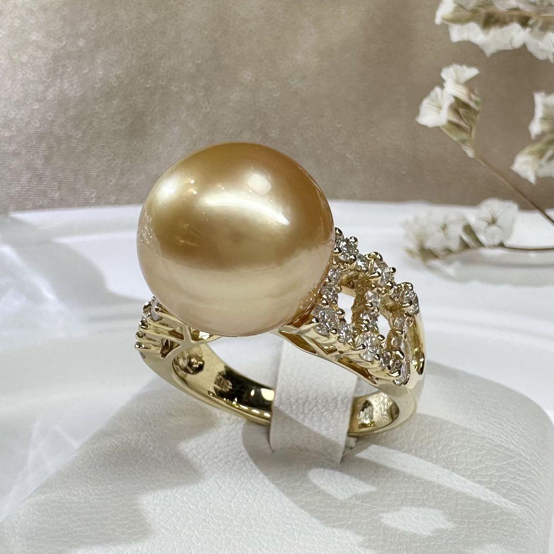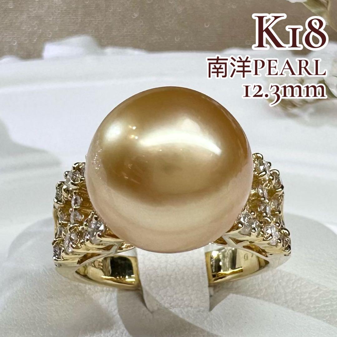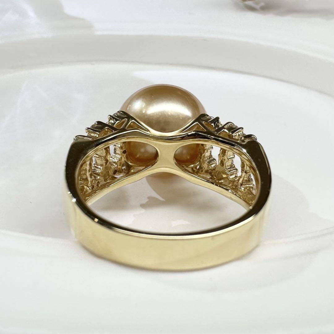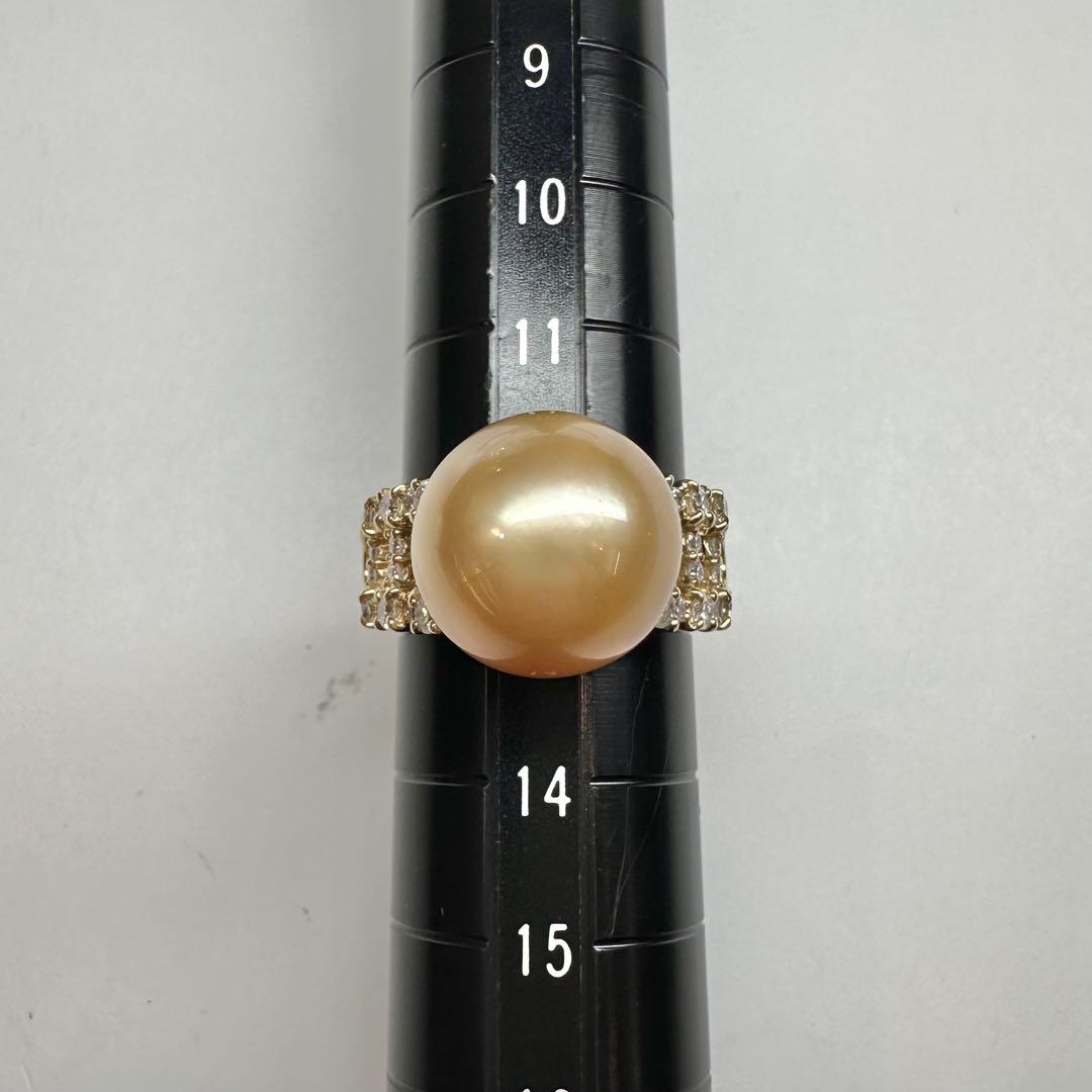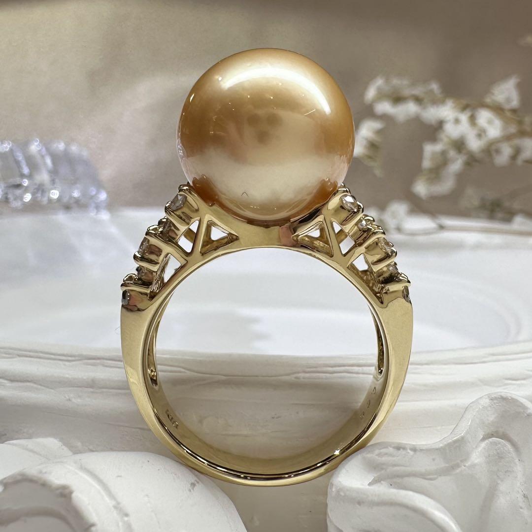 【K18】南洋パールリング 12.3mm ダイヤモンド付き イエローゴールド