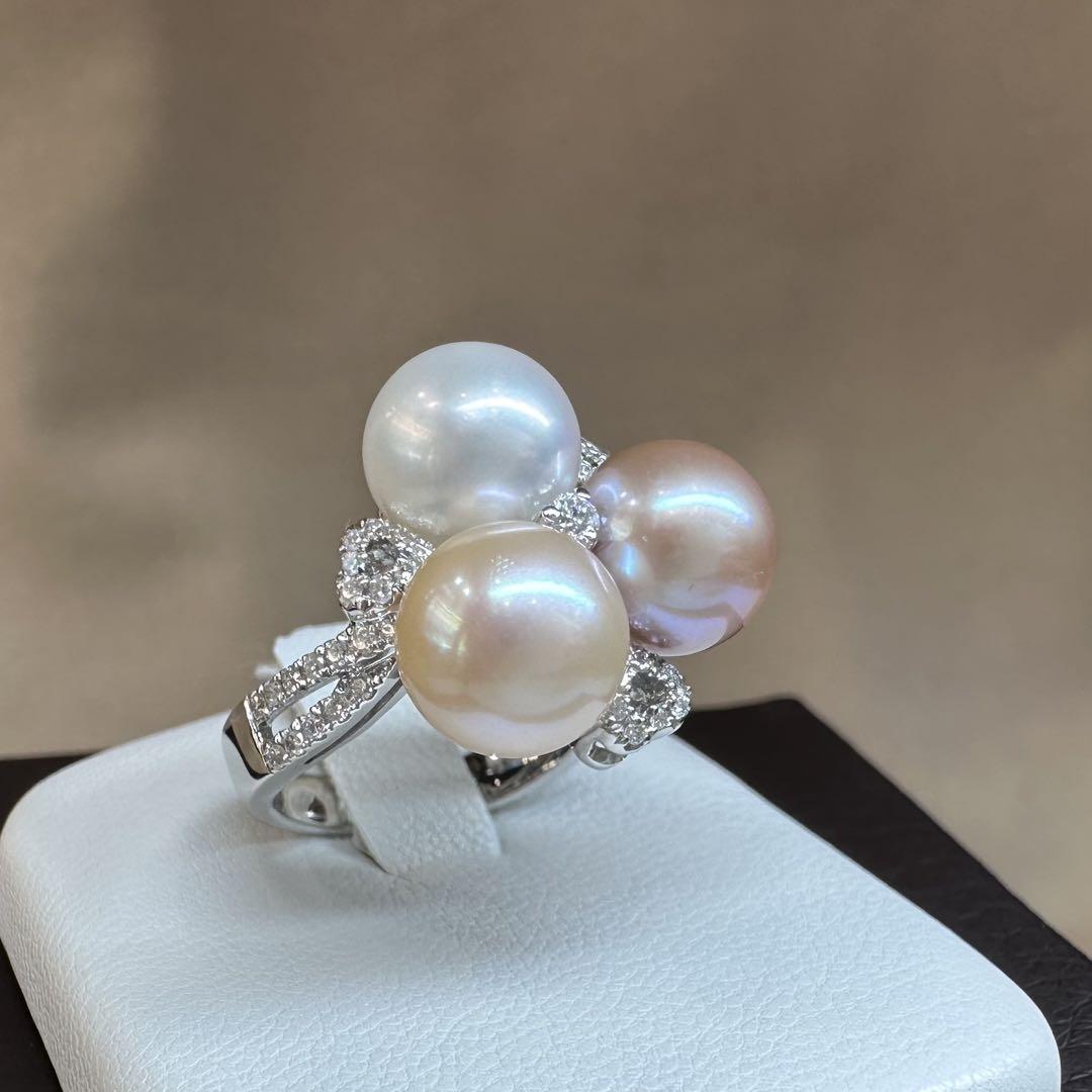 直径約8.3mmの美しいパールを中心に、輝きのあるダイヤモンドがあしらわれ、指元を華やかに演出します。