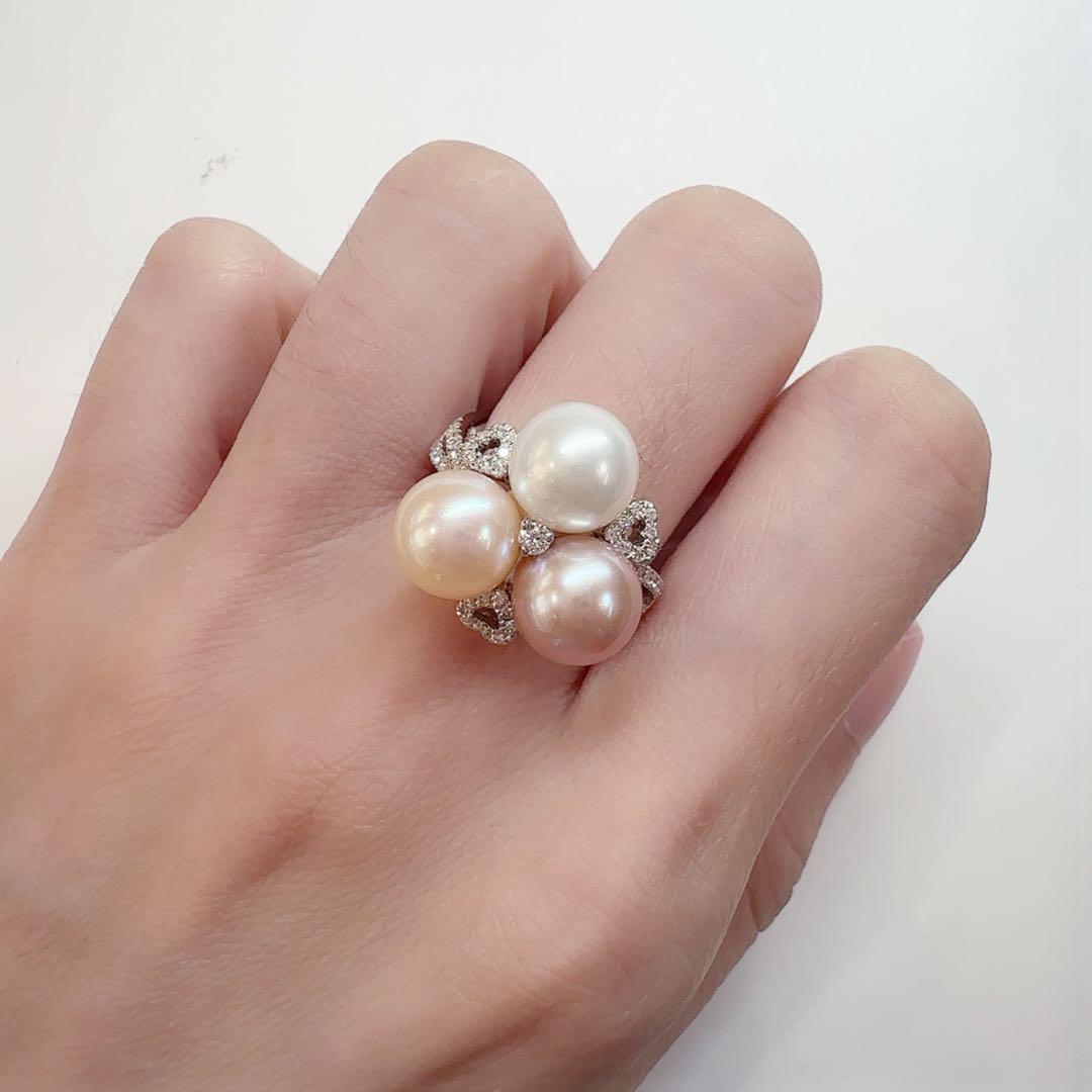 18金ホワイトゴールド(K18WG)を使用した、上品で存在感のあるパールリングです。