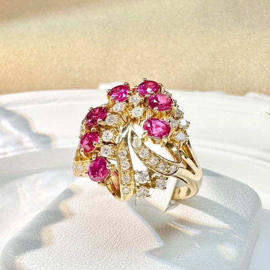 【美品】K18 ルビー 1.62ct リング ダイヤ 花束