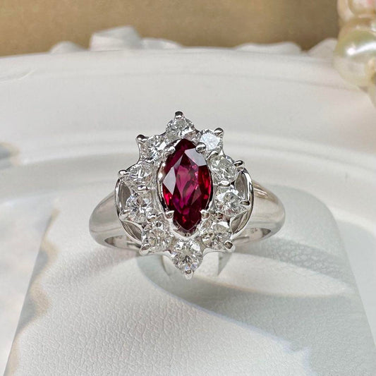 【美品】PT900 ルビー0.64ct リング デザイン ダイヤ マーキス