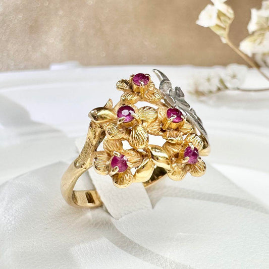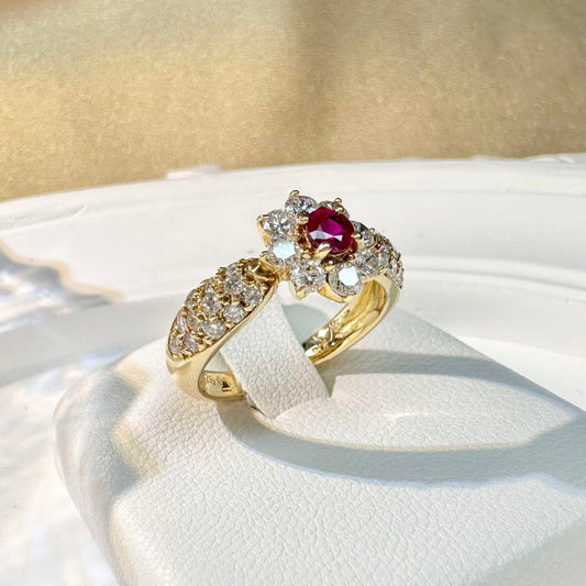 【K18】ルビー リング 0.26ct フラワー デザイン ダイヤ